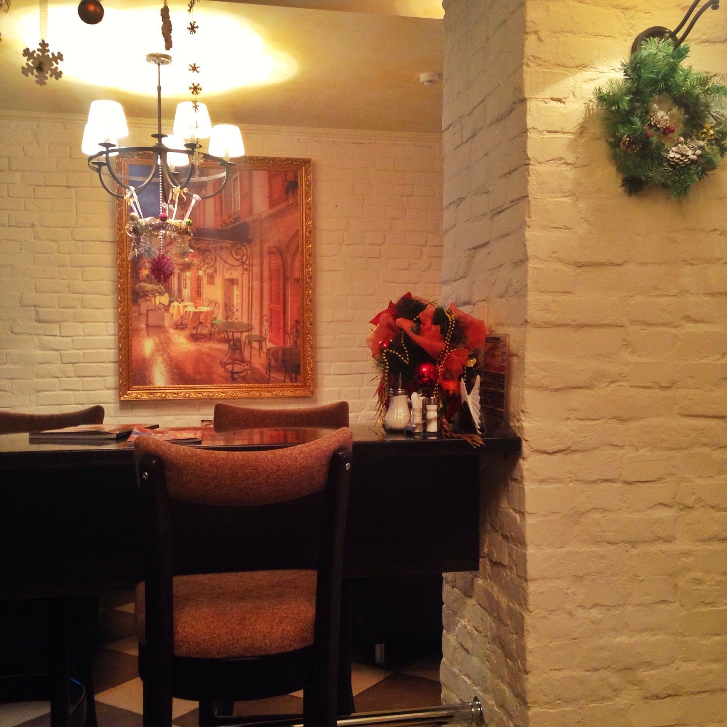 столы как в столовой. Официанты - заказ принимать не собираются, тарелки убирать тоже. Фотографии в меню не соответствуют тому, что принесли.